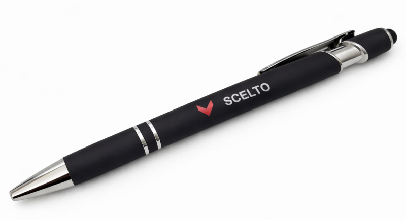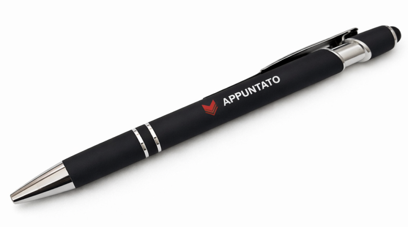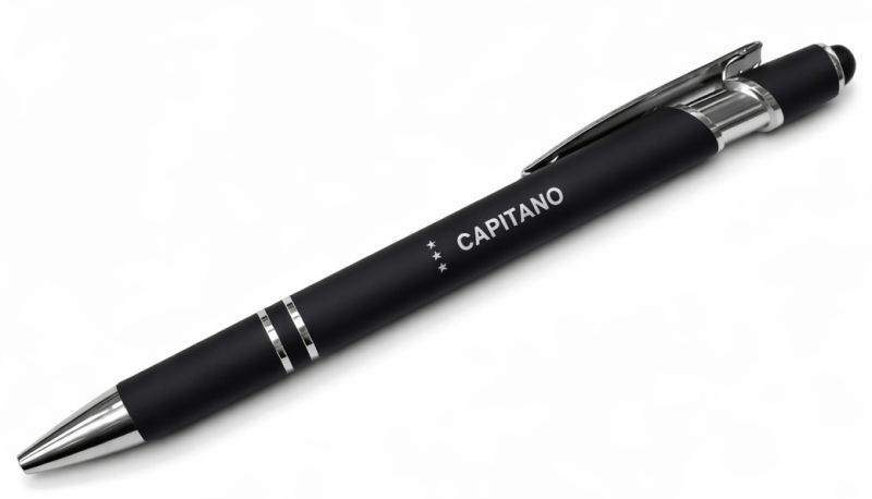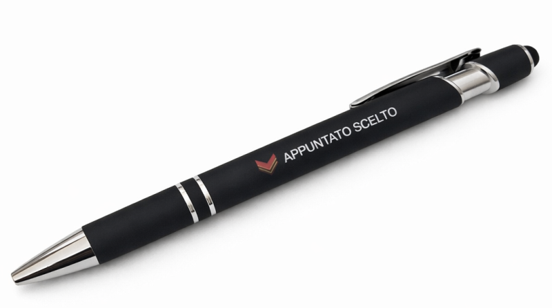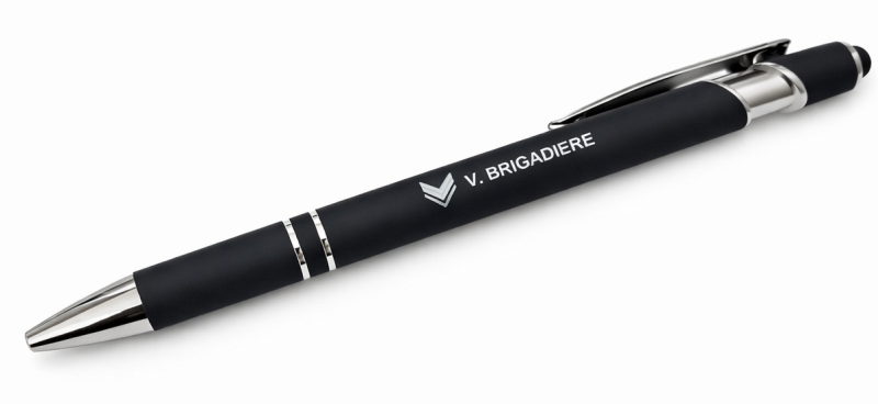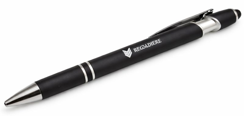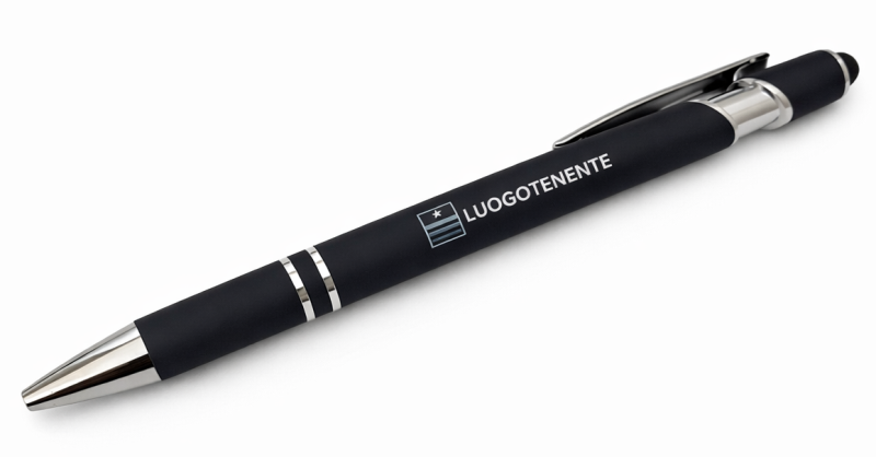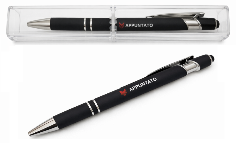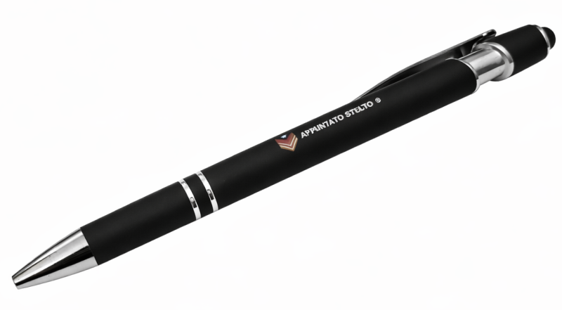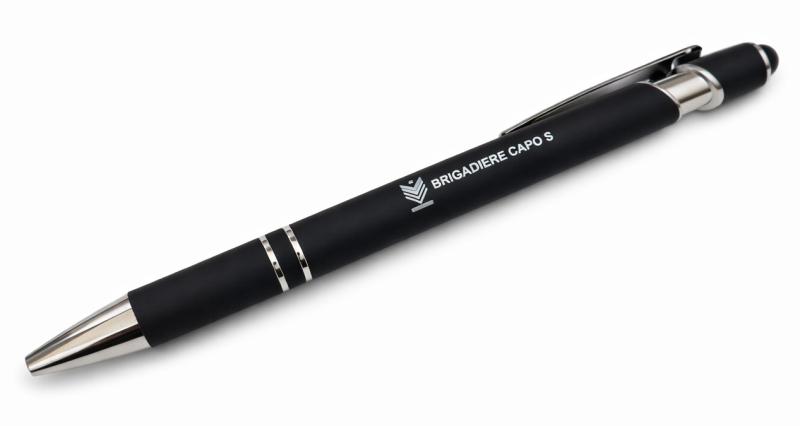 Penna a sfera con puntatore touch, meccanismo twist e corpo in alluminio con finitura metallica
