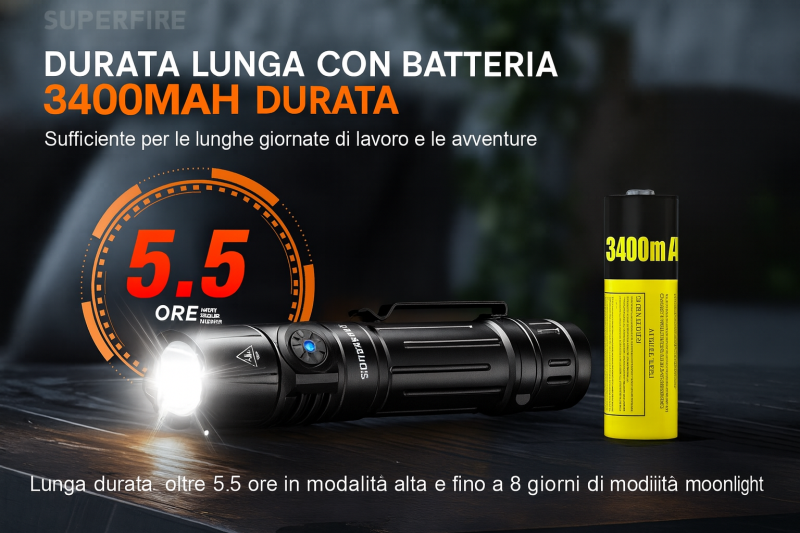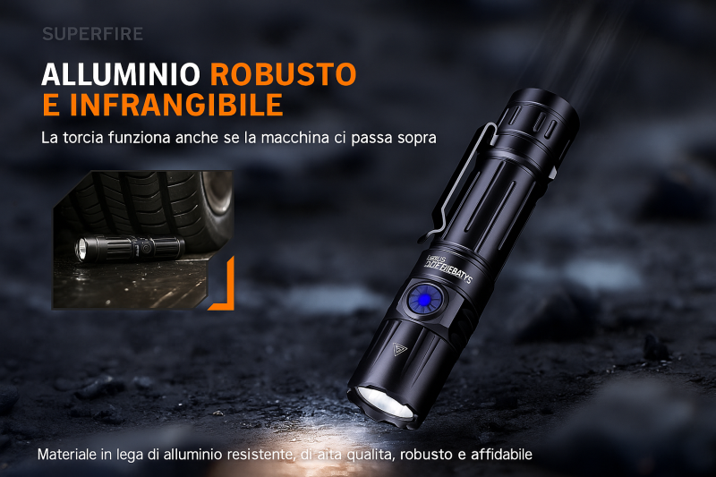 TN02 Torcia EDC ad alte prestazioni, con luminosità massima di 1800 lumen.