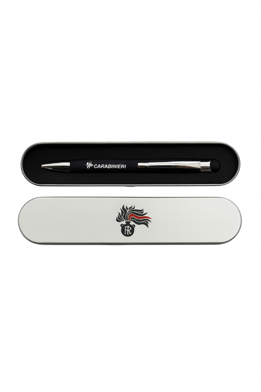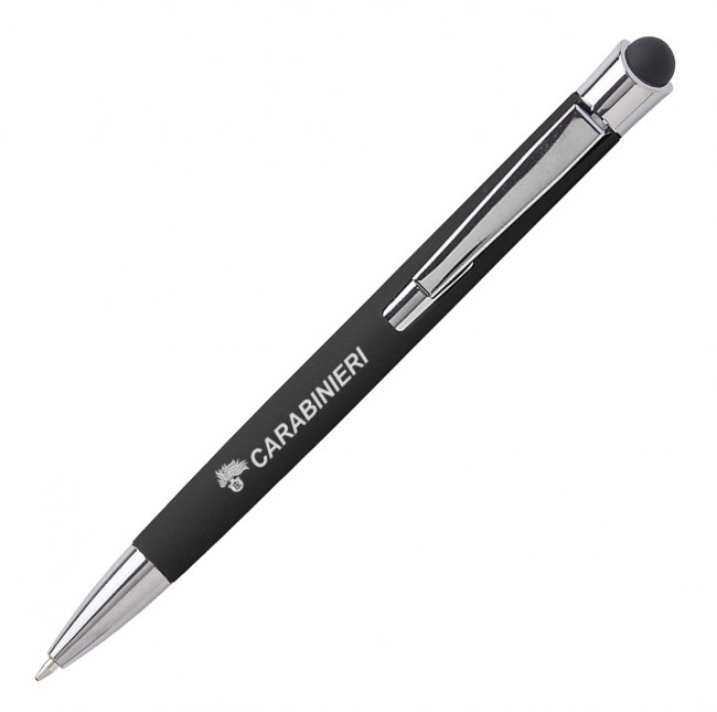 Penna a sfera in alluminio, fusto gommato, punta touch per