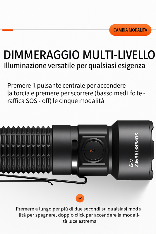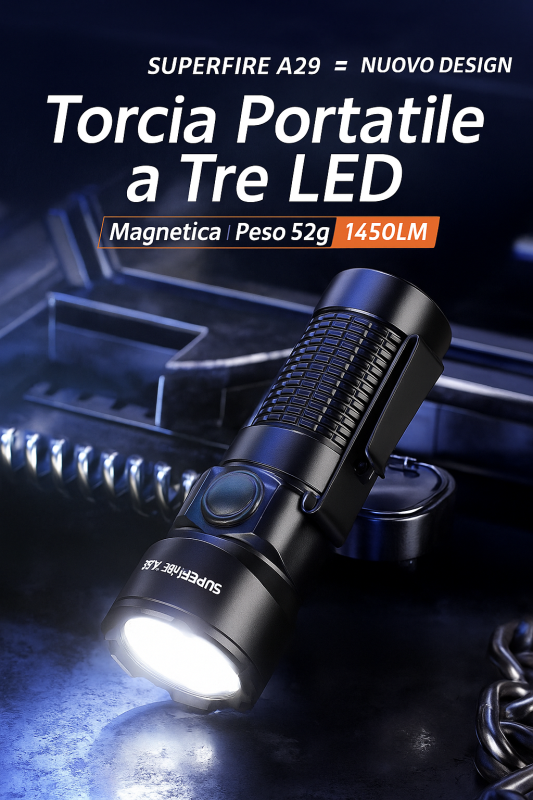 SUPERFIRE A29 – Torcia EDC Portatile 1450 LUMEN